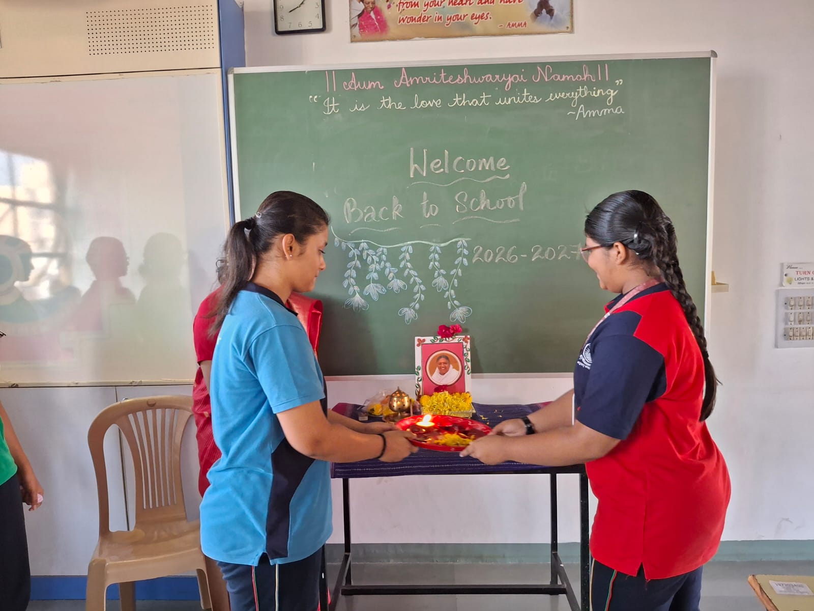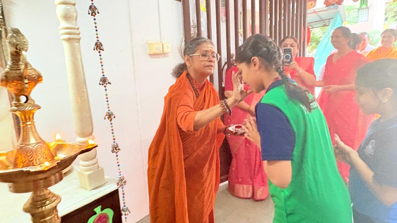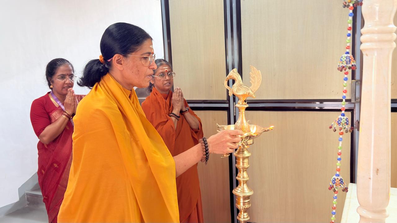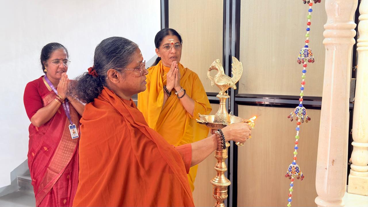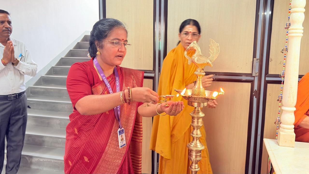 The morning assembly was conducted with solemnity and devotion. The chanting of Amma’s Ashtotharam and the collective performance of aarti by students and teachers created a serene and spiritually uplifting environment within the campus.