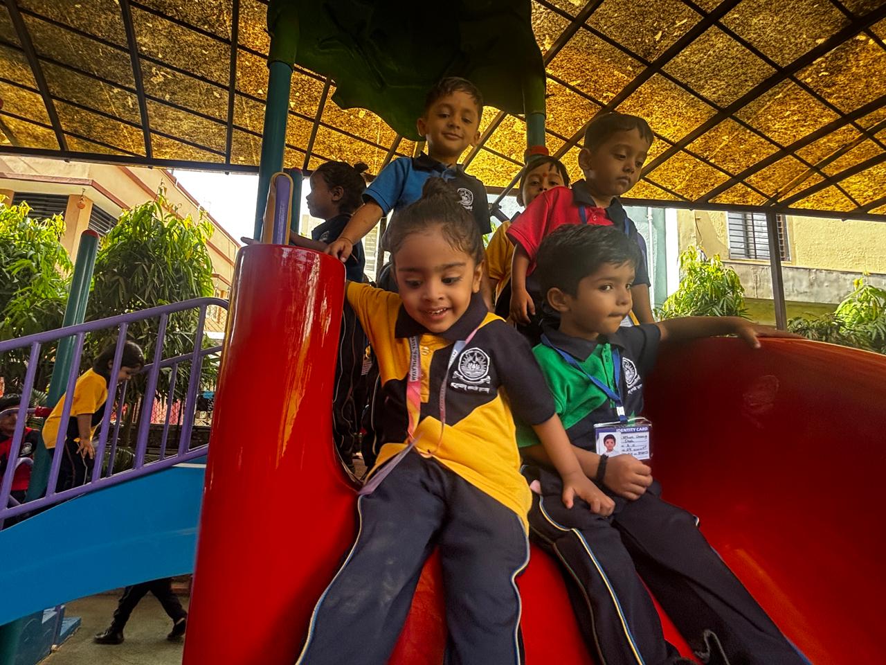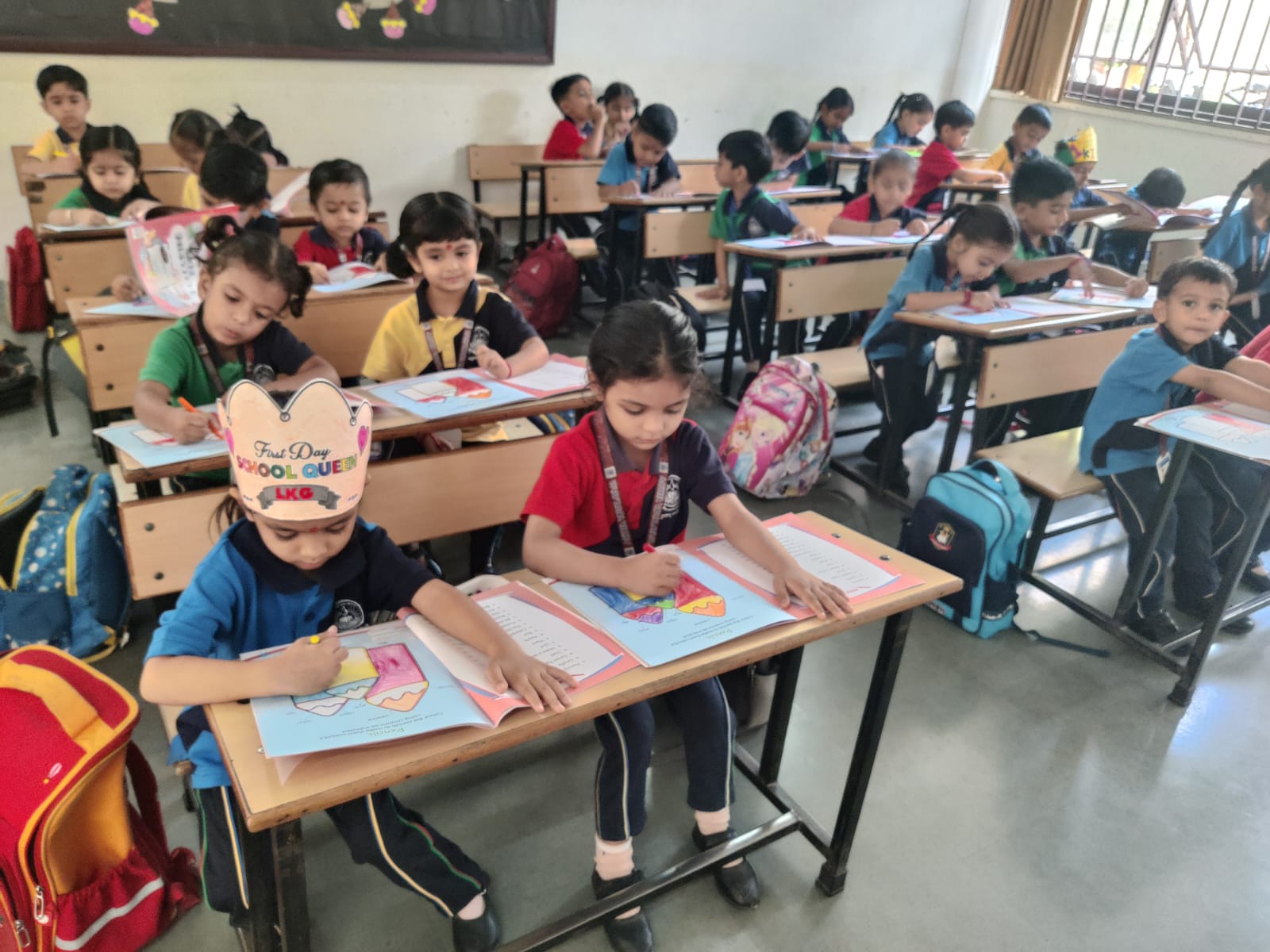 For our Pre-Primary students the first day was filled with joy, laughter, and excitement. Our little learners enthusiastically took part in a range of fun activities and interactive games, thoughtfully planned to make them feel happy and at ease. These engaging moments not only sparked their curiosity but also helped them build comfort and confidence in their new surroundings. With smiles all around, their first classroom experience turned into a warm, cheerful, and truly memorable beginning to their learning journey.